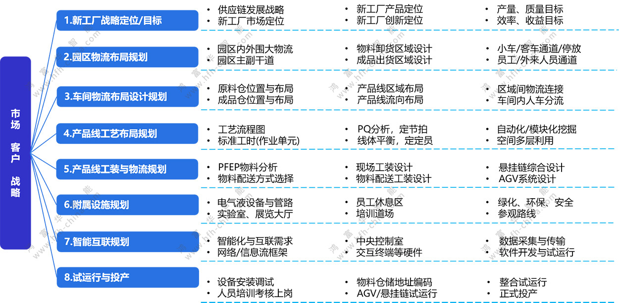 • 全面規劃園區及車間物流,包含優化物料流。